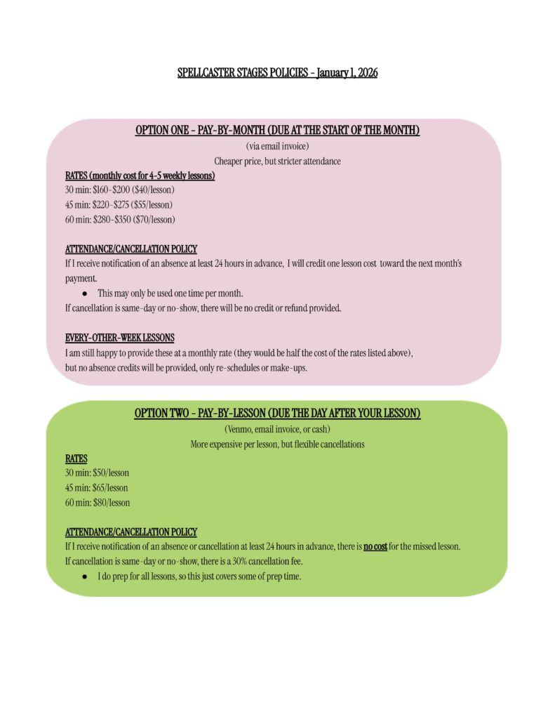 All Ages Voice Lessons, Beginner/Intermediate Piano